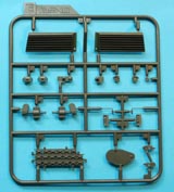 Sprue B (2 of) - idlers, alternative sprockets, headlights, spare track, various fittings.