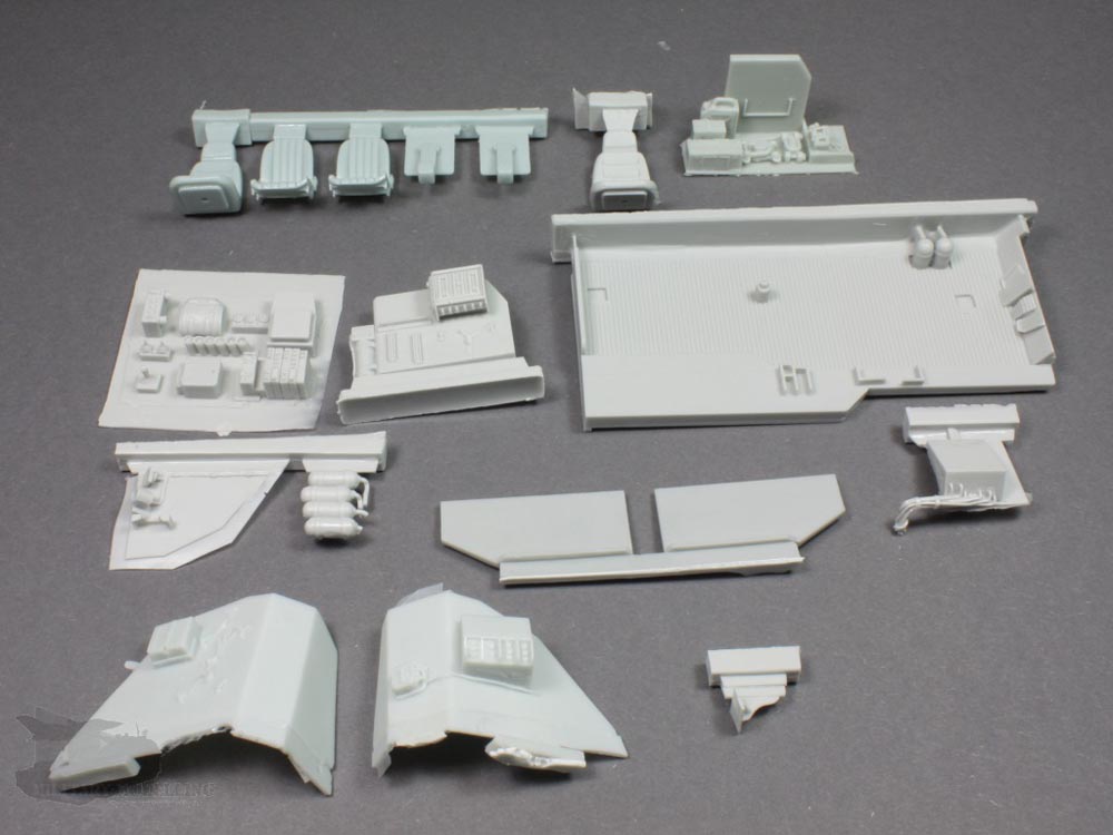 The upper and lower hulls are the largest resin parts included. These are very impressive components, which have to be admired again and again. Only some thin flash in the open hatches has to be removed, which is perfectly normal. Neither component has any casting block.