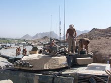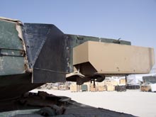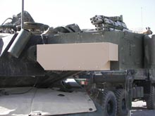 Just like the hull, once again there is no need to worry about lining up all of those MEXAS modules. It's all been done for you as the turret is a one-piece moulding that basically only needs the large rear stowage box and the uparmoured mantlet adding. Once again, this is an impressive moulding and the thermal cover looks very convincing. There was only one air bubble in my example. Whereas the hull MEXAS has non-slip panels included, the thermal jacket doesn't. You might think this strange to have non-slip on material but on the real thing they have been added on the sloped edges - see photo. These are easily taped and sprayed on with your preferred texture paint such as Rustoleum or Plastikote Terrcotta Touch aerosol. In reality, they rubbed off very quickly and looked very patchy.