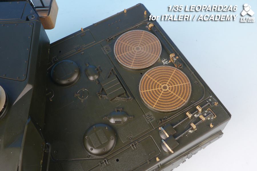 Negatives - The only things I don't like are that the convoy 'shield' is about 20% too large and the flat rings on the bottom layer of the rear deck grilles are flat and too thick. In reality, the circular rings are tubular so I don't think these really work. A surprising omission are chains for the smoke launchers - now available from Leopard Workshop as LW027A .